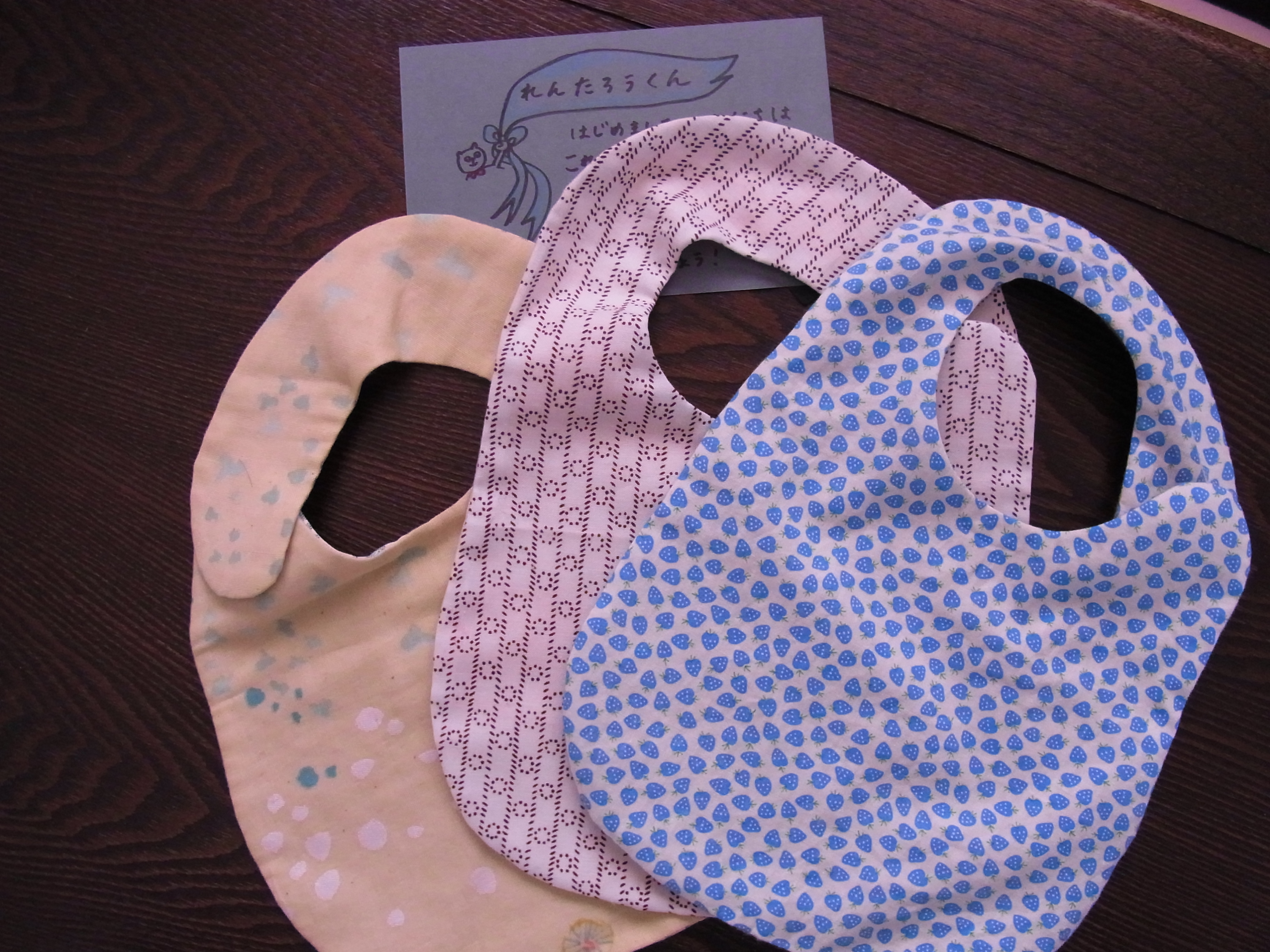 友達はきのうよだれかけを三枚プレゼントしてくれました。